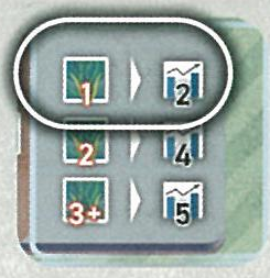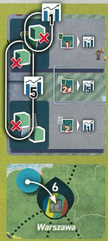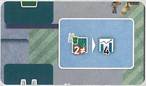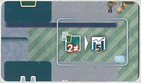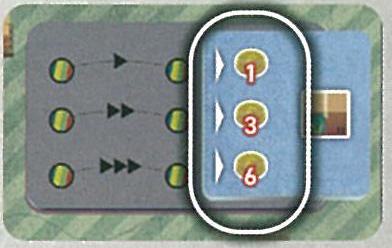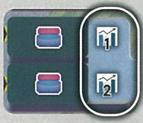 輸出ディスクが取り除かれていると、収入(月曜の朝)フェーズで1ユーロをもたらします。同様にマイルストーンマーカーが取り除かれていると、1VPをもたらします。ダブルアクションタイルとして使用すると、このタイルからは収入を得られなくなります。 |