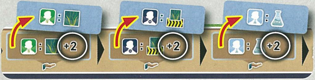技術者アクションによって部門ボードに配置することで機能を追加し、工場がアップグレードされます。サイドボードのスペースが空き、より多くの科学タイルを配置できるようになります。 |