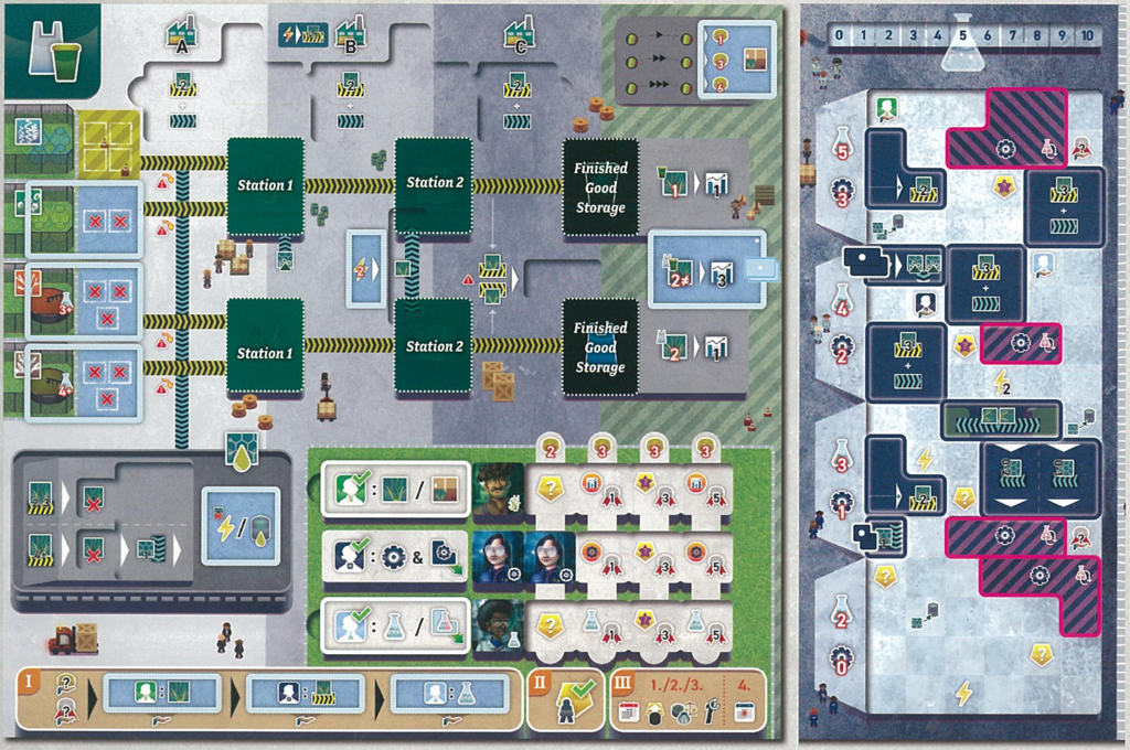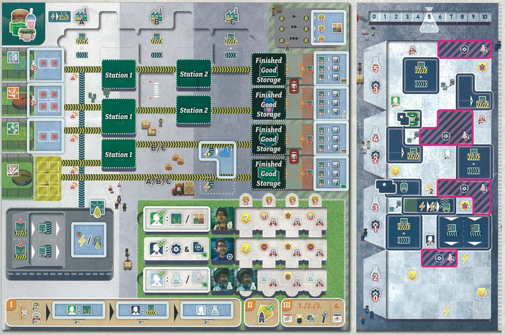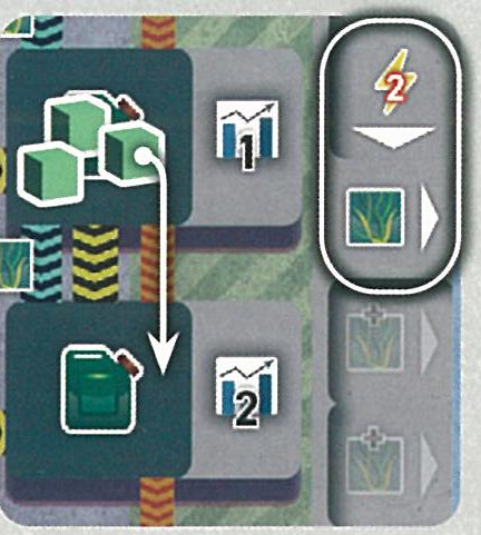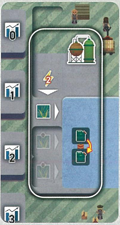 注意: 2人用ゲームでは、同じ種類の副産物を生成する2つの部門ボードを組み合わせることはできません。化粧品またはバイオ燃料部門のボードは、バイオプラスチックまたは食品部門のボードと組み合わせてのみ使用してください。