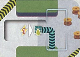 (9) 2人用ゲームでは、副産物タンクタイル2つをゲームボード上の指定された場所に配置し、ボードに印刷されたタンクを覆います。