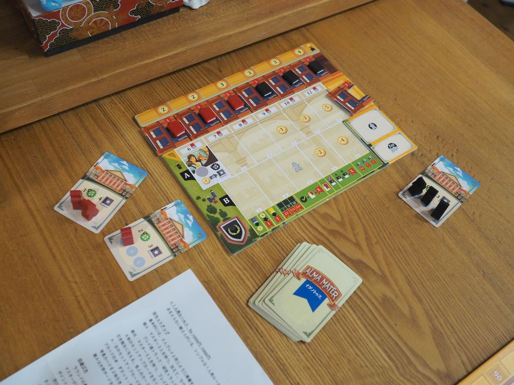 基本的には、3人プレイと同じように準備する。学生タイルと教授カードは各2枚ずつ置く。