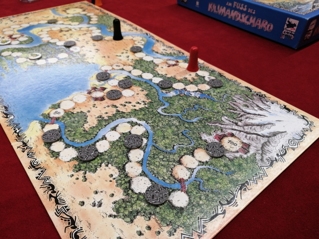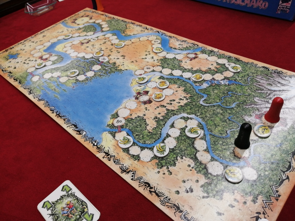 初手で100マスでゴールのうち40マス進む派手さもあるが、ライオンに出会うと村に戻され、位置交換を見つけると逆転したりされたりもある。