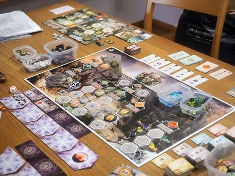 隕石の衝突が迫る終末世界。タイムトラベルと強化スーツを駆使して、人類を未来に導け! SFらしい細かなバックストーリーと、世界観と融合した物品やルールが素晴らしい。勢力ごとの個別能力もエッジが利いていて、どっぷりと終末世界に浸れる商品だっ!