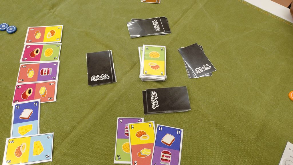 上がった際、麻雀のアンカンみたいに両端2つを裏返しにして、上がった人の捨て札の数+1+ラウンド数の点数を請求します。(ロンはロンされた人のみ、ツモは全員を人数で割る)この際、裏返し2枚をブラフで嘘をつくことが出来ます。