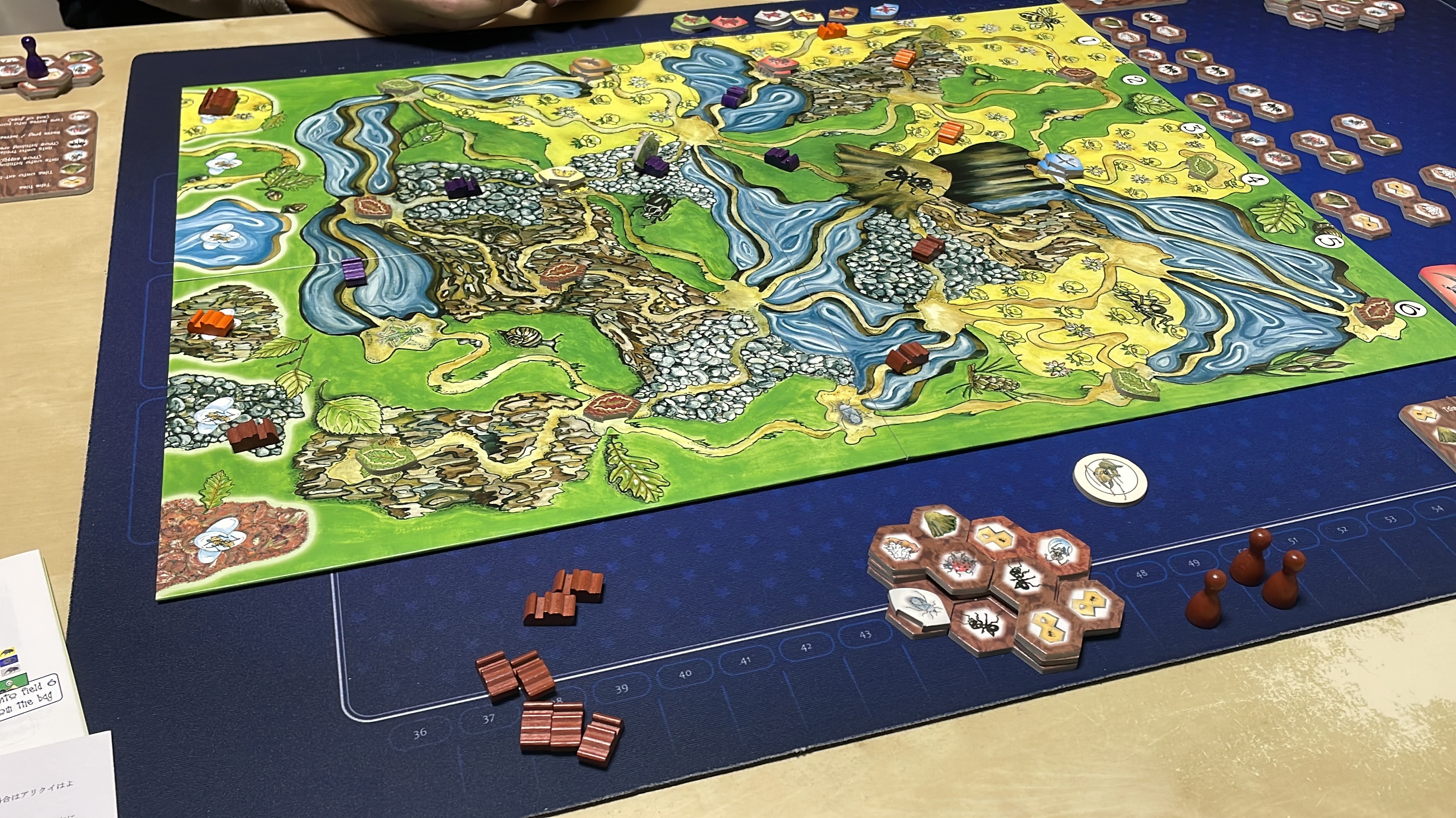 ボードには中央にアリ塚があり、各プレイヤーはここからボード上に散らばる木の葉タイルや虫タイルを集めます。