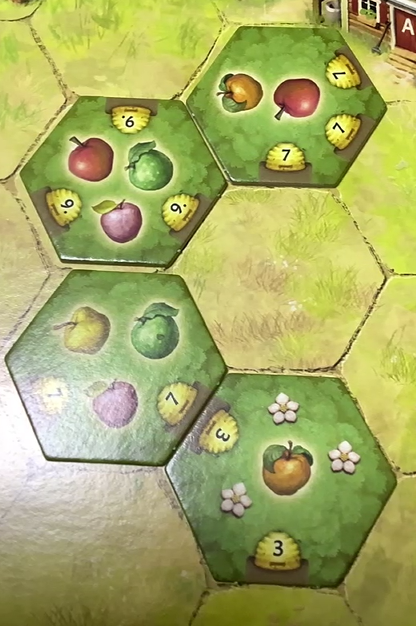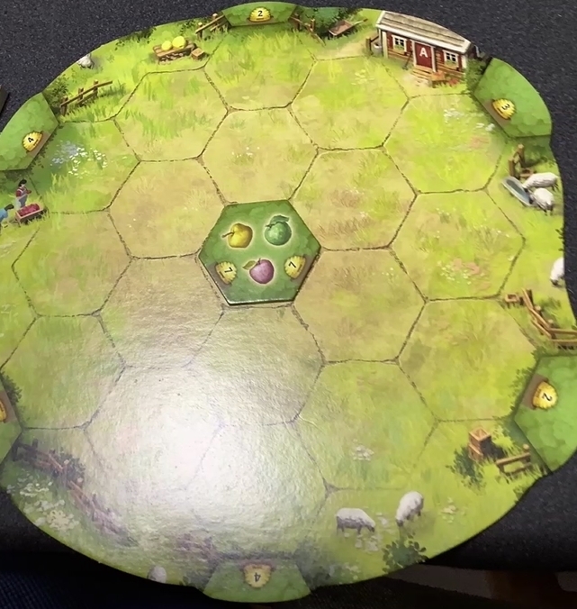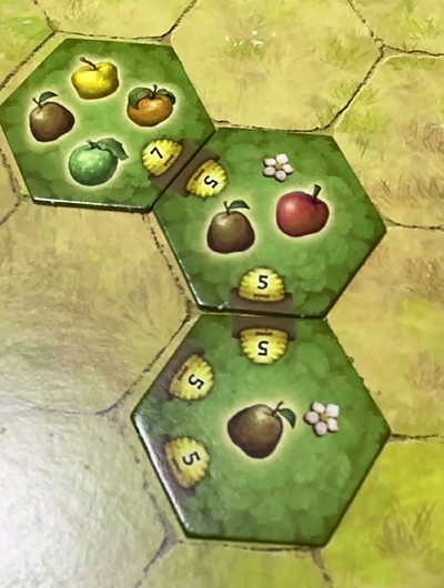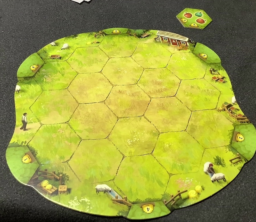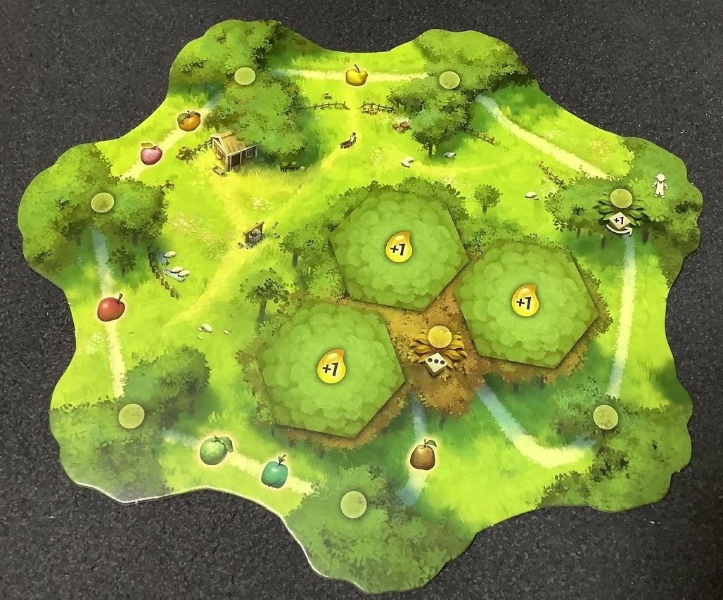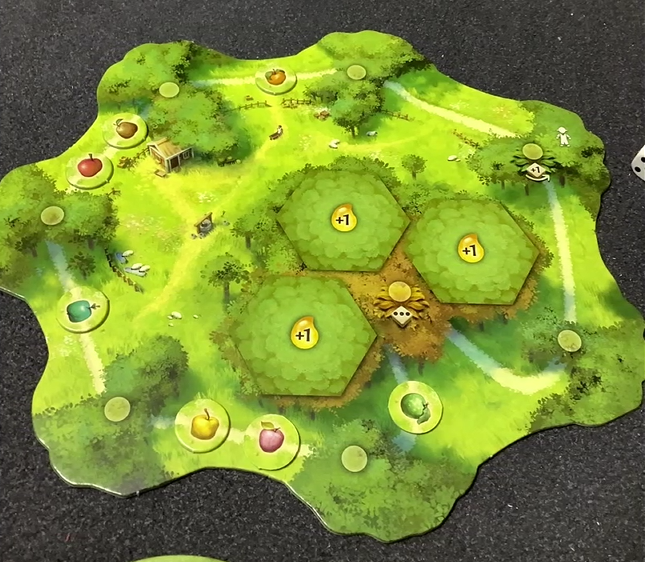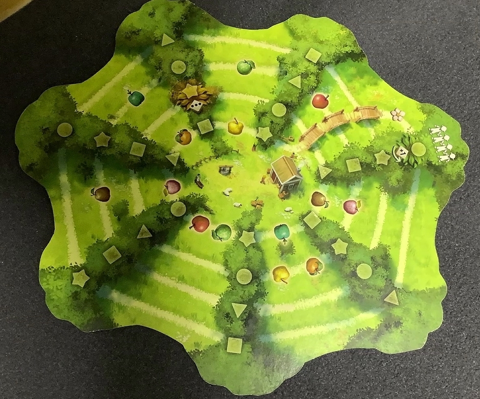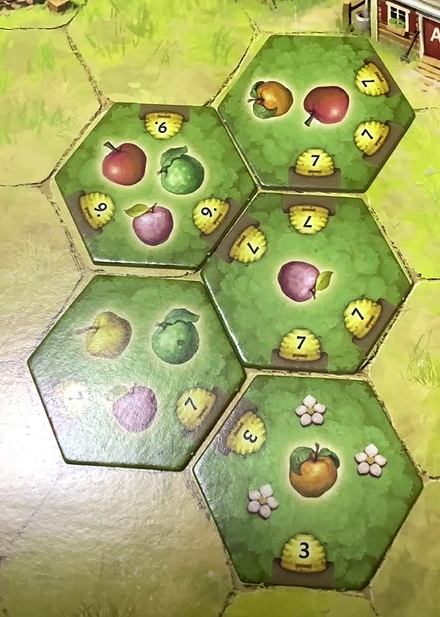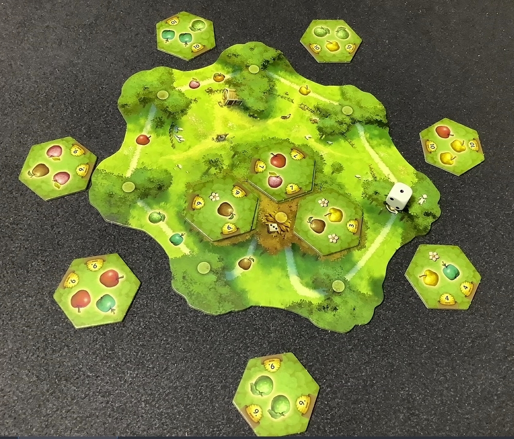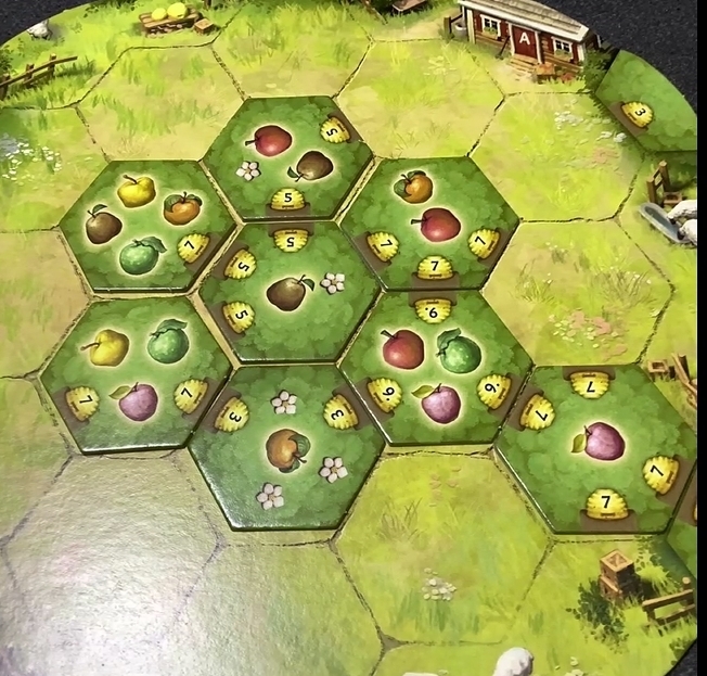 軽量級のタイル配置ゲーム。自分の農場のあちこちに様々な種類のリンゴを植えていき、養蜂を行いはちみつを取っていく。という農場系ゲームとなっているが。
