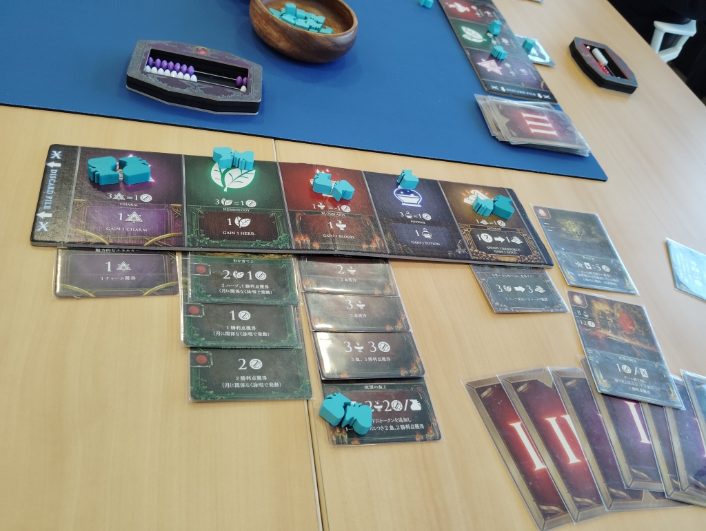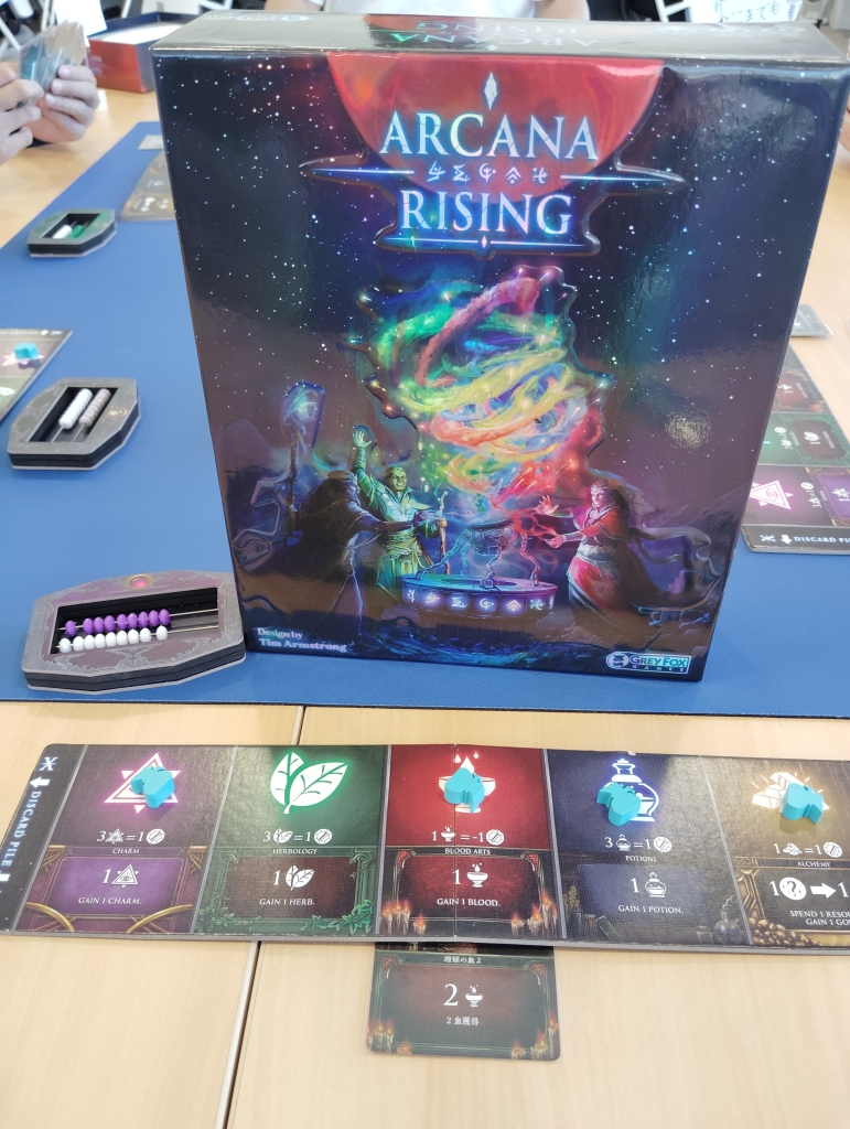 魔法の知識を修得したり、呪文を唱えて資材を生み出したり変換したりにと力を争うドラフトゲーム。