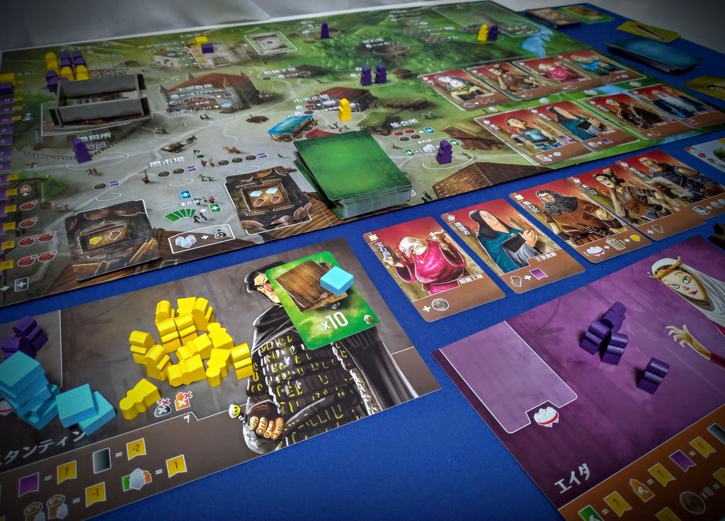 そのほかにも「徳」を軸にしたシステムがあり、闇市場での取引や徴税所からの盗みなど、手軽に高収入を得られるアクションを実行すると徳が下がり、大聖堂の建設を行えなくなったり、ゲーム終了時に勝利点を失ったりするが、一部の支払いコストが下げられる脱税を行えるようになる(逆に高いと闇市場から出禁になる)という、表裏一体のシステムもユニーク。
