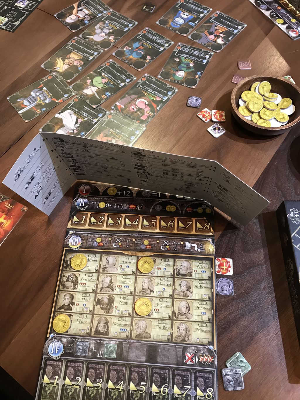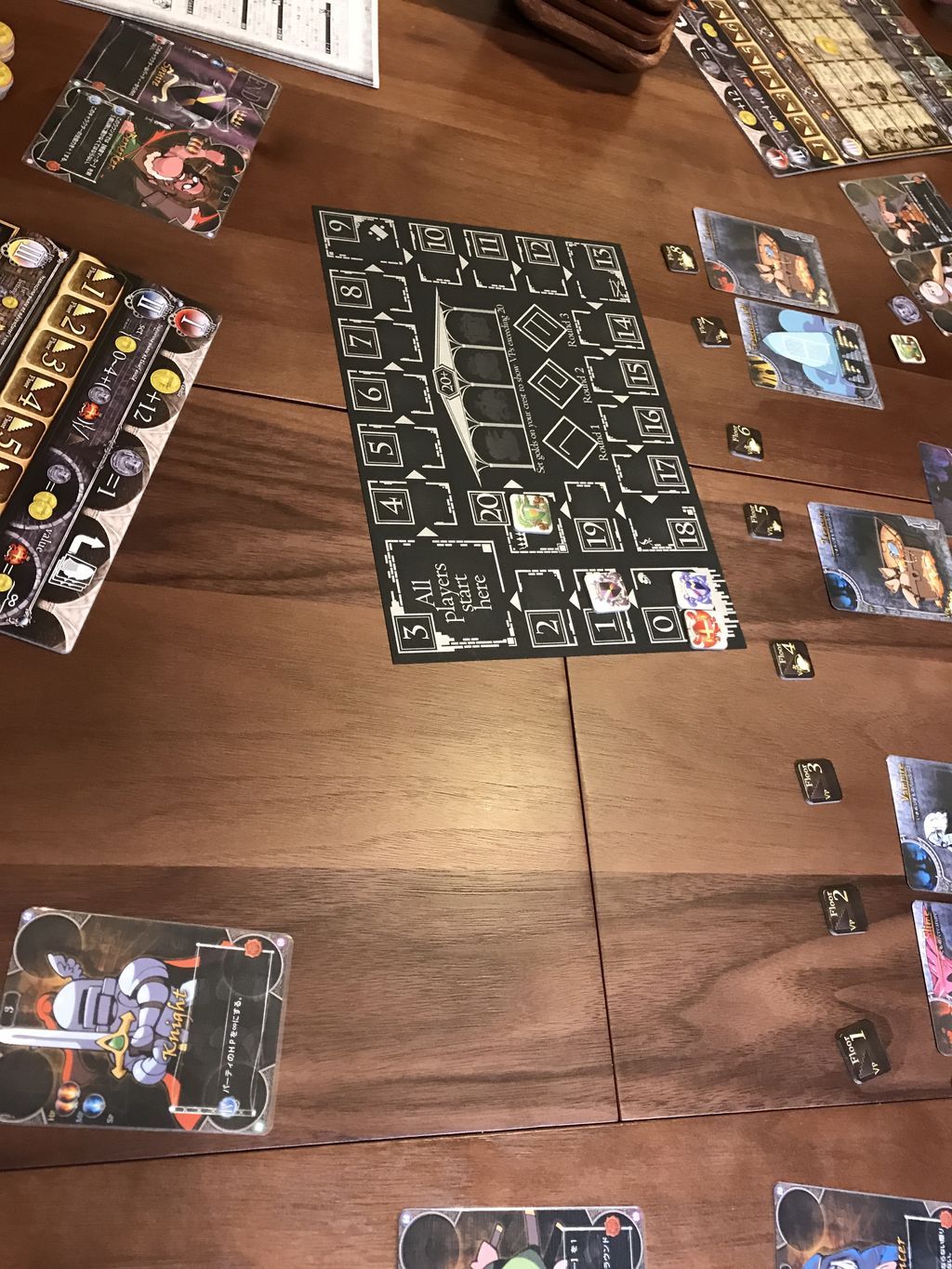 ダンジョンを作って競りでいくつかの階層を確認して、競りで冒険者を雇って、冒険者を連れてダンジョンへ突入!を3ラウンド。