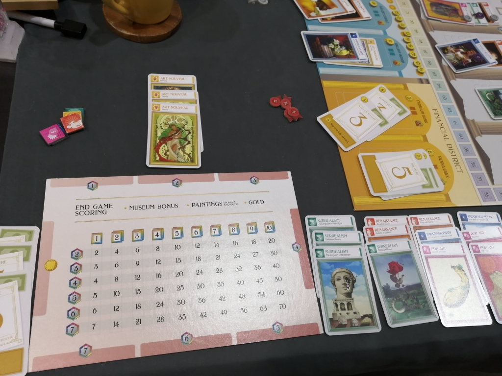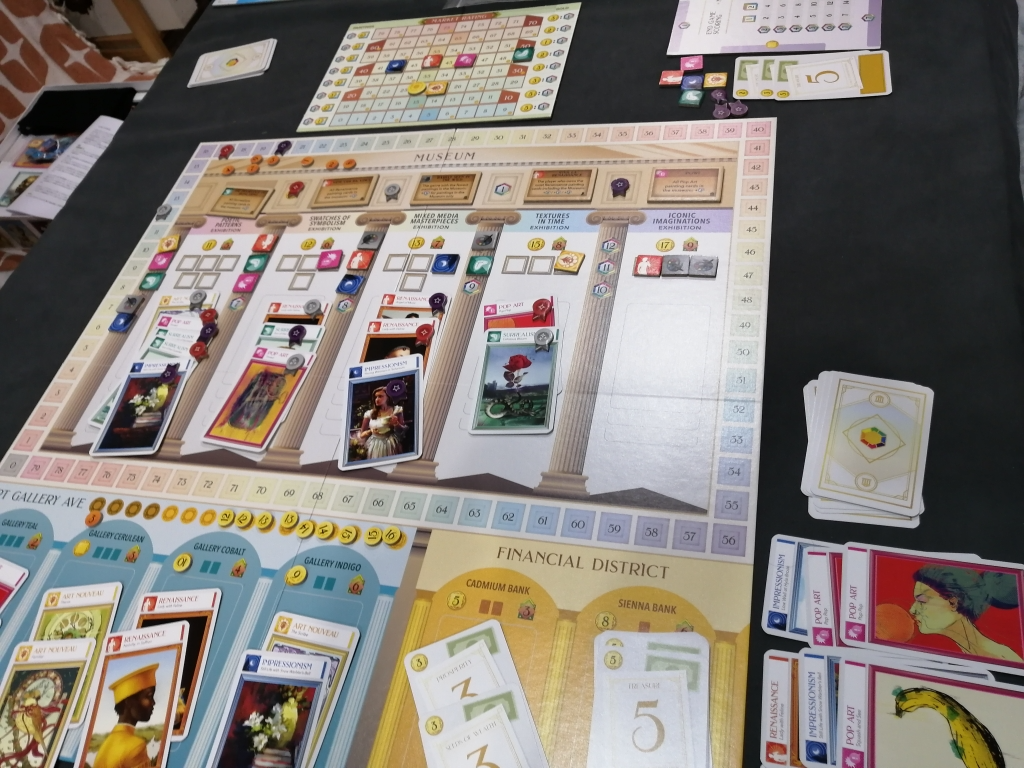 アクションも分かりやすいし、手番中に絵画の価値が上がって展示できる資金が溜まったりやらプレイ中は商人気分。