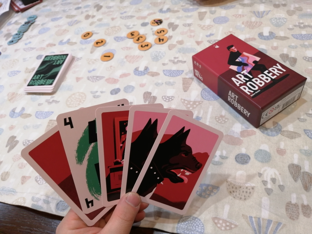 すべての美術品を盗んだら次の場所へ。4つの美術館で美術品を盗み終み終えたらゲーム終了。一番価値の合計が高いと勝ちやけど、アリバイが薄いと逮捕されて脱落。勝ちも美術品もスマートに盗まないとね。