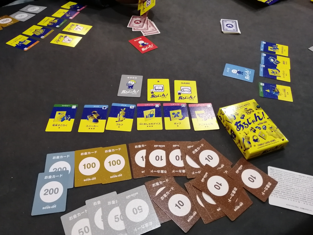 4回よむよむクンが出たら、その競りを終了したら客呼びフェイズとなり、客の山札からめくれた客が求めているお店に客が「あるじゃん!」と来る。