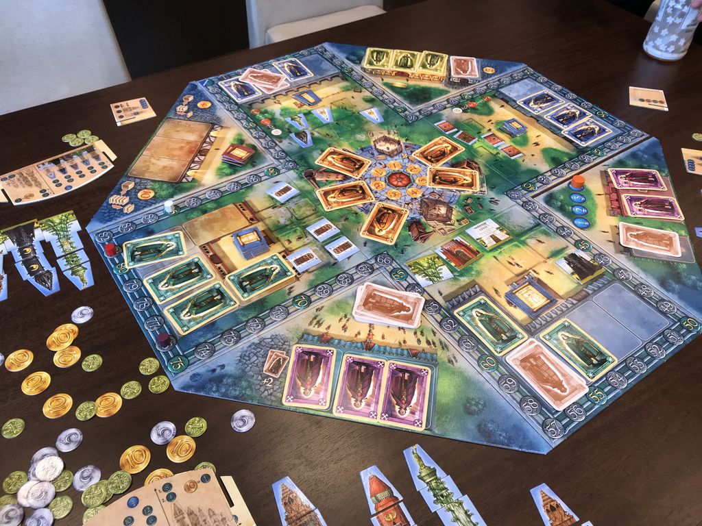 薄荷さん、Kokeさんとの3人戦。拡張入りでやりましたが、バイヤー増やせるのはいいですね。ゲームの方は黒と白の塔でトップを取りつつ多くの塔を建てた薄荷さんが勝利。僕は茶色と緑と赤の塔で高さトップを獲得できたものの2位。高額塔に手を出さなかったのが敗因です。
