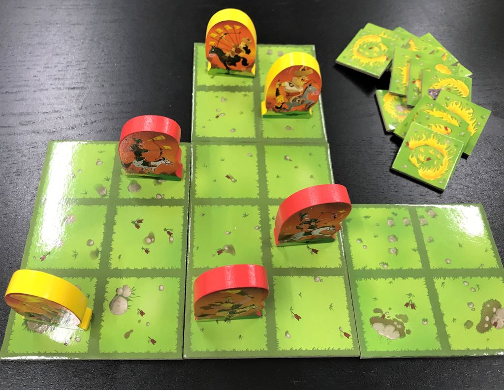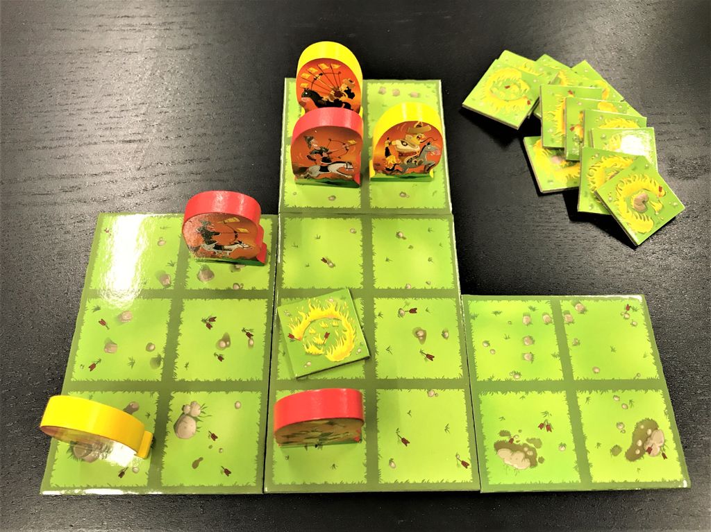 コマの動き方が1種類、火を置くところも自由、とルールはかなり少なめです。すぐゲームを始めることができます。