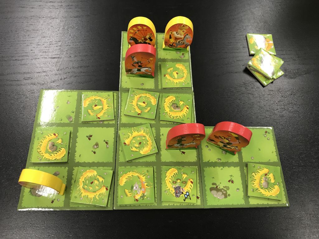 火を巻いて相手を動けなく出来たら勝ち、の2人用のアブストラクトゲームです。