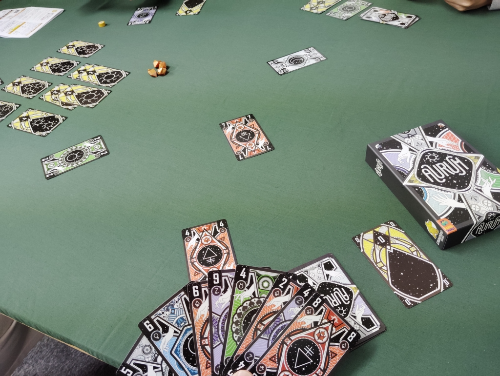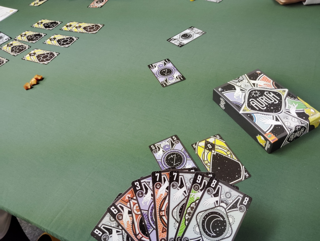 スタートプレイヤーからカードを1枚プレイしていき、他のプレイヤーはすでにプレイされているカードと同じ色のカードはプレイできません。