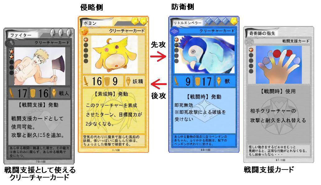 戦闘は、クリーチャー+戦闘支援カードで行います♪