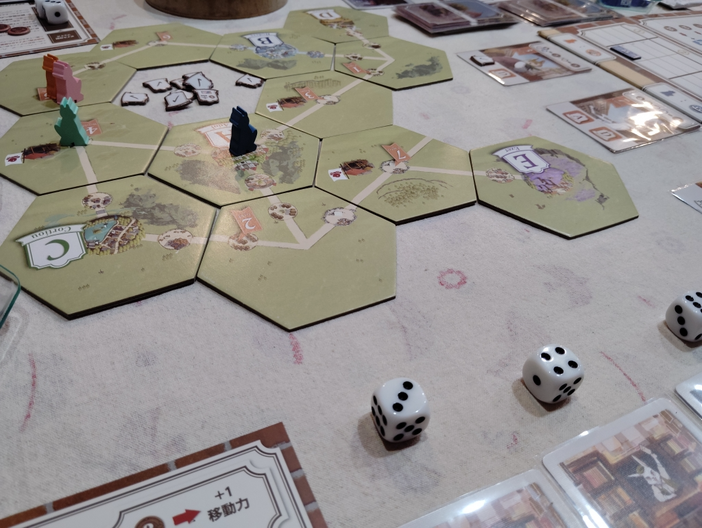 ダイスの出目で運べる距離に変化はあるけど、お金で解決もできたりするし誤差の範囲内で、株と案内した証のマジョリティ要素が重要でした。