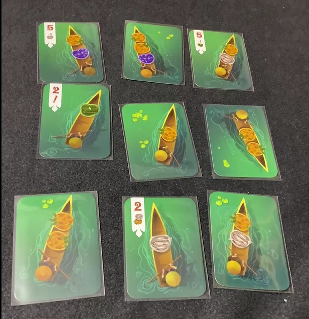 点数源は最初に水上マーケットを作った人、最初にもらったタイルに合った品物の個数、唐辛子カードからもらえる点数を合わせて高い人が勝利します。