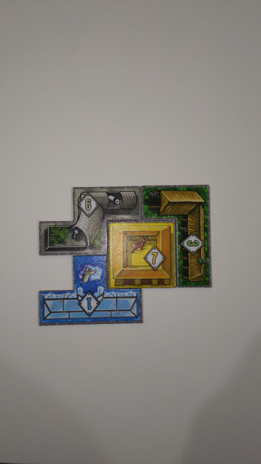 最後にネコ車タイル。1~3マスのタイルがありますが、手数を抑える為に3マスタイルで埋めていくべきです。13÷3=4枚。