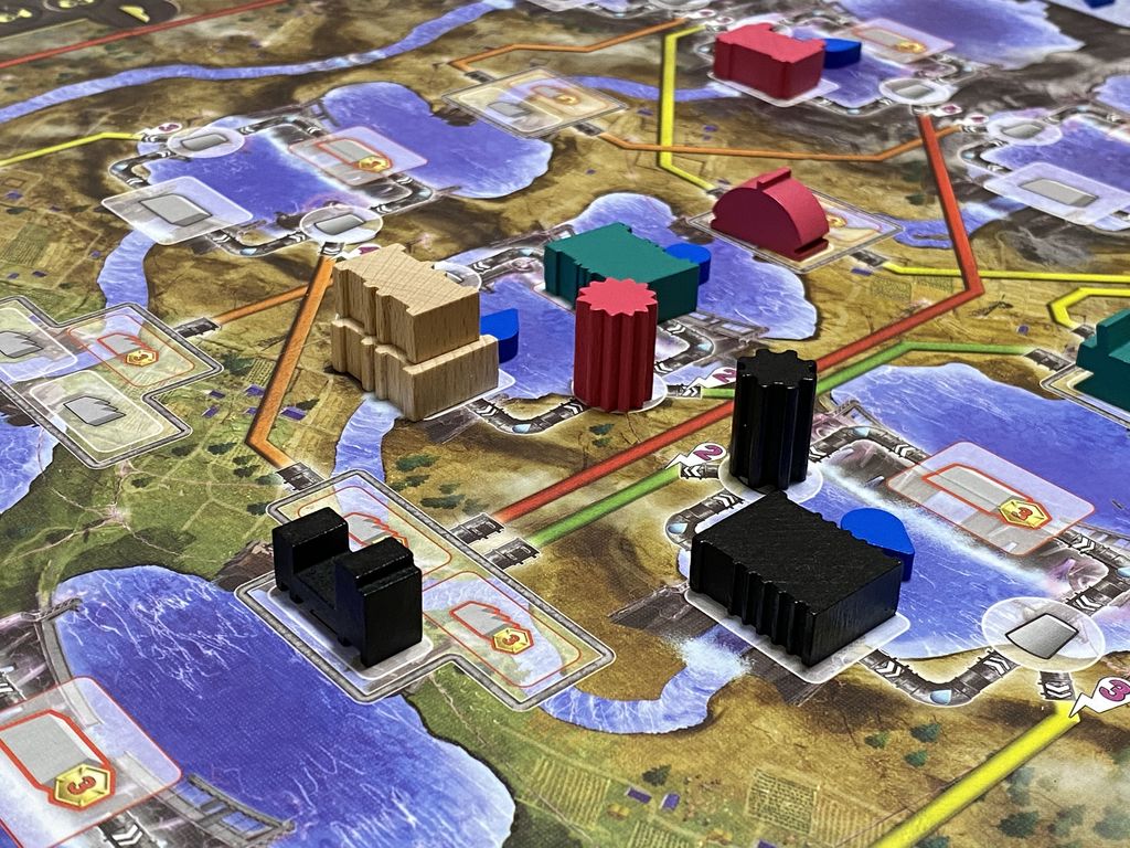 しかし全て自分の建設物である必要はなく、導管は他のプレイヤーのものでも良いし、ダムは中立ダムが最初から立っています。また建設にはリソース、時間もかかるため全てを自分で賄うのは難しく、他プレイヤーの建設物を利用せざるを得ない。このバランスが絶妙で他のプレイヤーと協力が少し必要だけど、一歩抜きん出たいジレンマ。