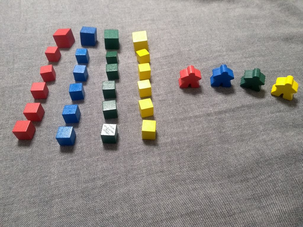 プレイヤーごとに決められた色の敷物を置くと勝利点が手に入りますが、同じ色の敷物がたくさんつながっているとより多くの点数を獲得できます。