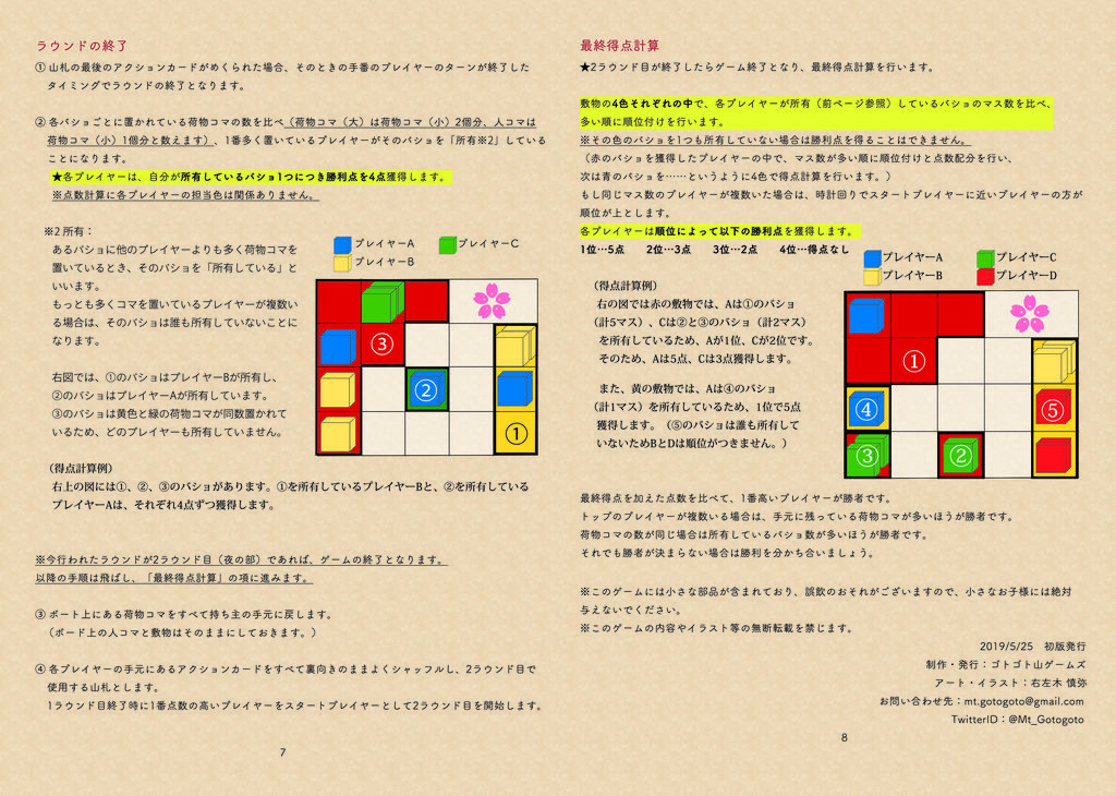 場所取物語ゴトゴト山ゲームズさんのルール/インスト