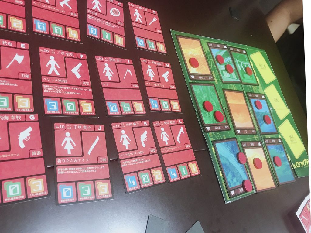 あと元ルールの、カードをコマ替わりにしての移動は、プレイアビリティ悪いので平たいディスクとかコマにして裏に生徒識別記号つけましたッ