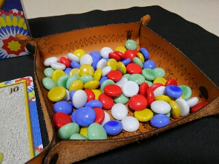 コンポネーントの石が、じゃらじゃらして触っていて楽しいですし、手番での選択肢が2択のうち、どちらかを実行してからの商品を購入するかしないかで、分かりやすくて遊びやすい。