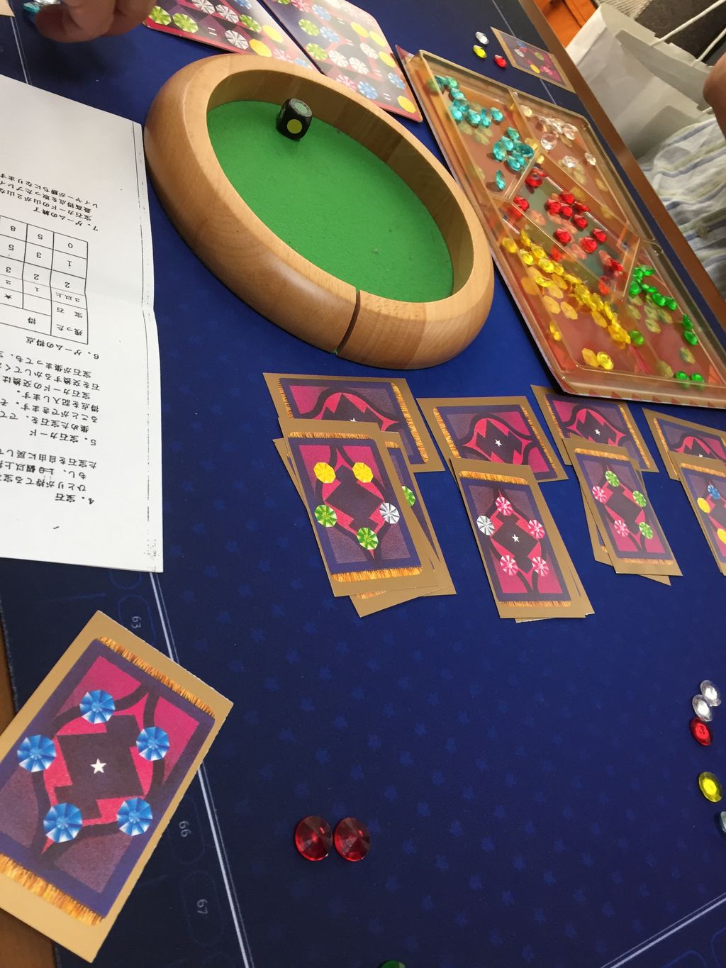 宝石は5種類あり、サイコロには1つオールマイティのマスがあります。好きな宝石を取ることが出来ます。