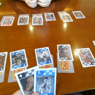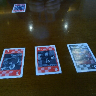 表向きに並べてあるカードが、プレイされたトリック終了時に裏向きになっていたカードが表向きになるので、めくれたカードによっては形勢逆転なんてことがありますね。