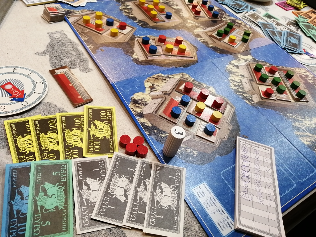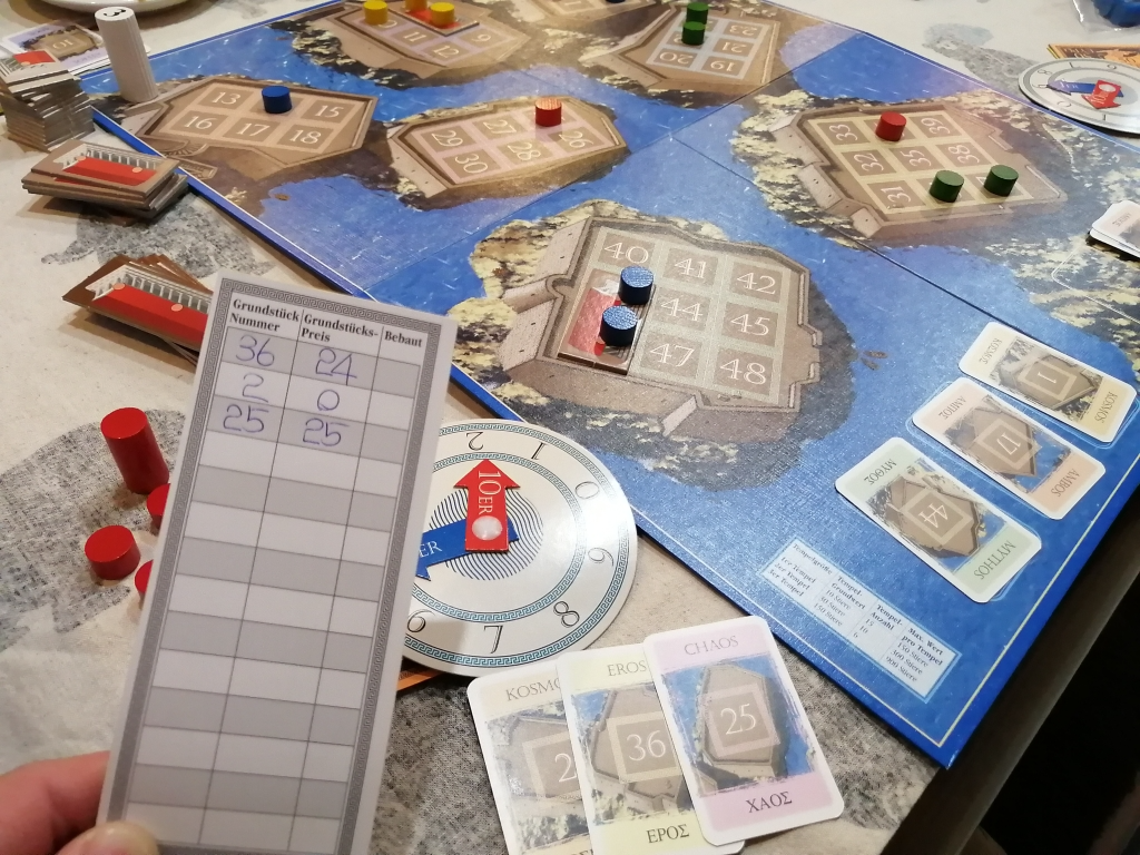 入札か建設かを繰り返していき、すべての土地が購入されたら、最後に1回ずつ建設をしたらゲーム終了。