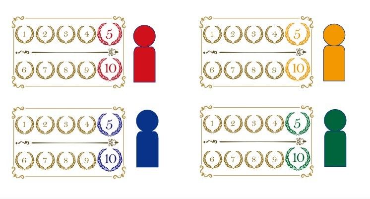 爵位カードの数と、そのラウンドで勝った回数が同じ(予想した回数勝てた)プレイヤーは、2点を得ます。