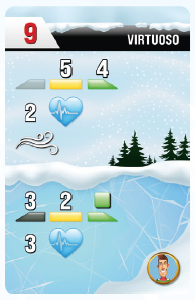 ゲームはラウンド制で行われ、各ラウンドでは、すべてのプレイヤーが同時にスキーカードを選択し、1人ずつターンを行います。