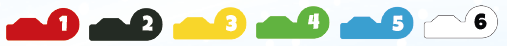 最も高いイニシアチブ(左上隅の赤い数字)を持つプレイヤーがアクションを完全に実行します。その後、すべてのプレイヤーが自分のターンを取るまで、次に高い値のプレイヤーが続きます。ここで同値の場合は、スキー色の順序を使用して、誰が先に行くかを決定します。