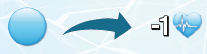 オフセットの上部アクションのコストは1💖ですが、青ワックス2つ分の効果を受け、コストを-2💖下げます。したがって、最終的な脈拍変化は-1💖になります。 |