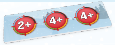 射撃場(11)で5つの射撃ダイスをすべて振ります。これにより、特定のカードによって参照される初期値が設定されます。誰かが射撃を行うまでダイスは再び振られることはありません。