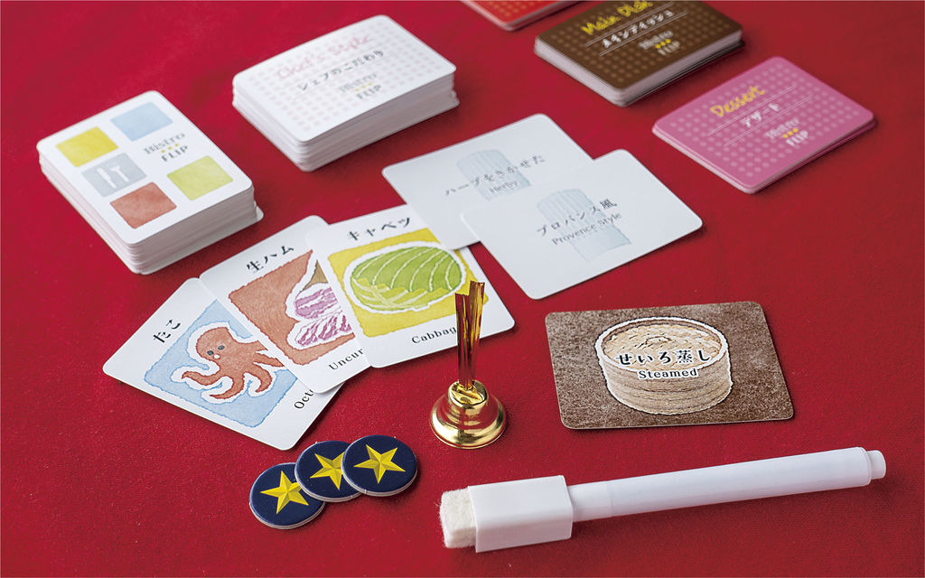 全ての料理が披露されたら1ラウンド終了。「お客さま」を交代してゲームを続けます。全てのプレイヤーが「お客さま」を1回ずつプレイしたらゲーム終了で、最も多く「星チップ」を持っているプレイヤーが勝者となります。