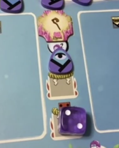 ちなみに真ん中のエリアはスタートプレイヤー争いに関係していますが、同時にダイス目を強くするアイテムも手に入ります。