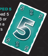 反転された5 チャレンジ中、反転された5は強さが6以上のカードに勝ちますが、強さが4以下のカードには負けます。反転された5同士の対戦の場合も、同数は挑戦者が勝ちます。 |