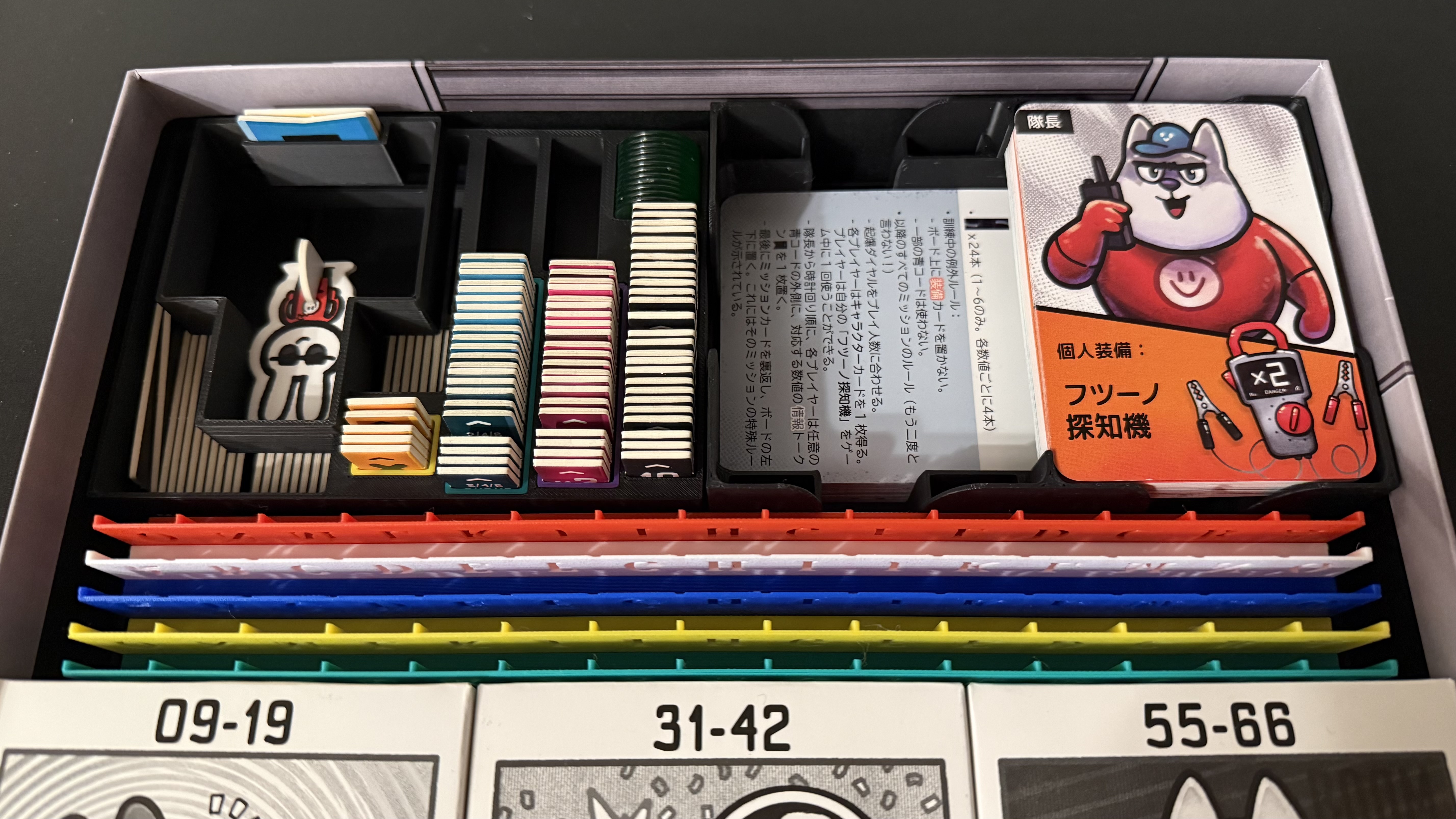 コンポーネントが多く少しセットアップに時間がかかる点が少し気になっていたんですが、メルカリで売っていたインサートセットがかなり優秀でこれを使えば片付けも楽になります(拡張にも対応)。