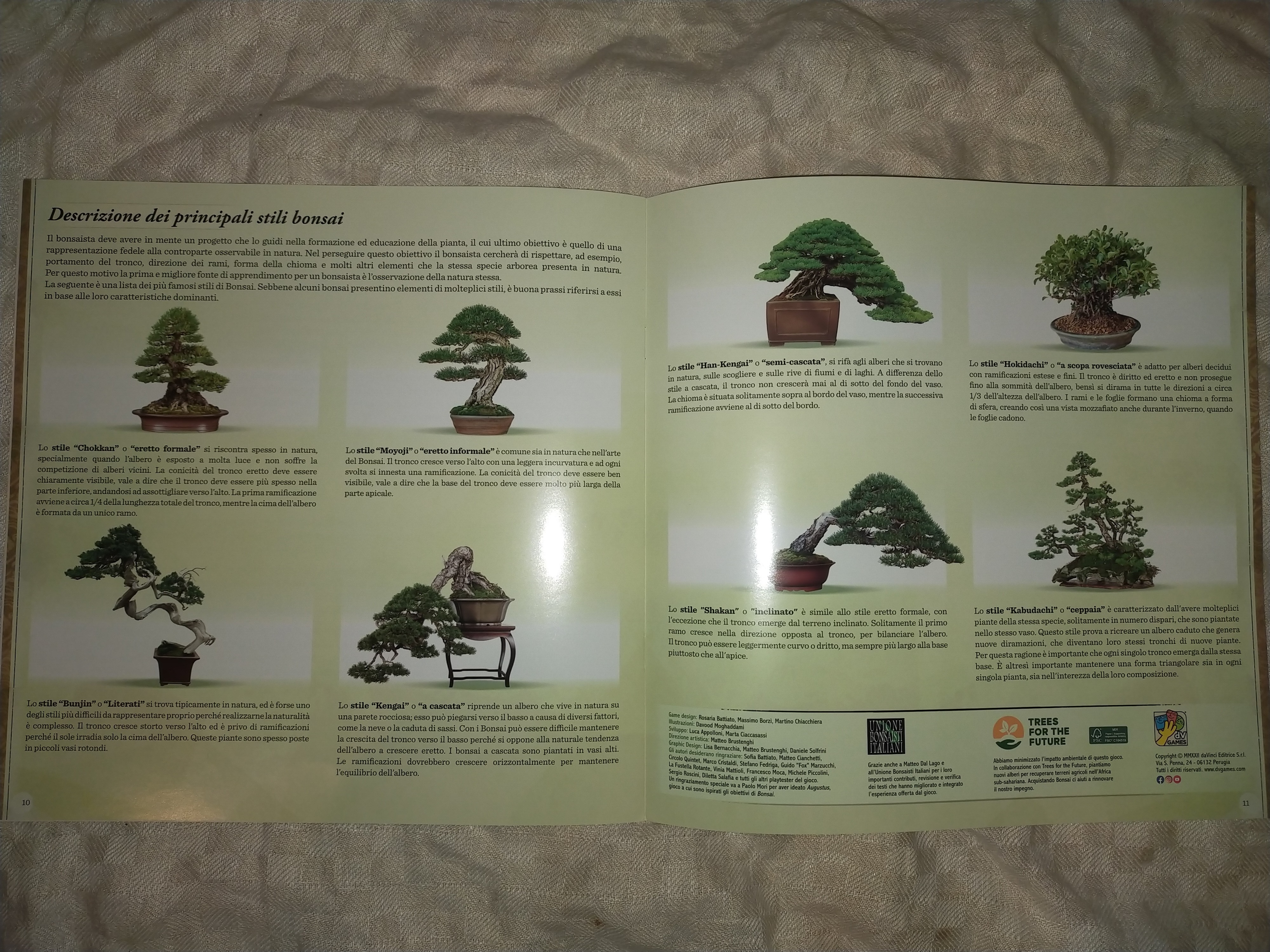 なんと言っても説明書のこの1ページである。日本に住んでいる私ですらどんな種類の盆栽があってどんな意味が形に込められていてどんな名前がついているかなんて、全く知らなかった…なかなか良い勉強。