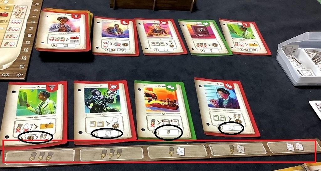 あと収納でしょうか、年代記の台がかさばるというより、このゲーム、バインターの金具が13個もあったりするので、結構収納が困難です。BGGの方でも話題に上がっていましたが、インサートなどを検討する方はBGGの方を覗いて参考にした方がいいかもしれません。