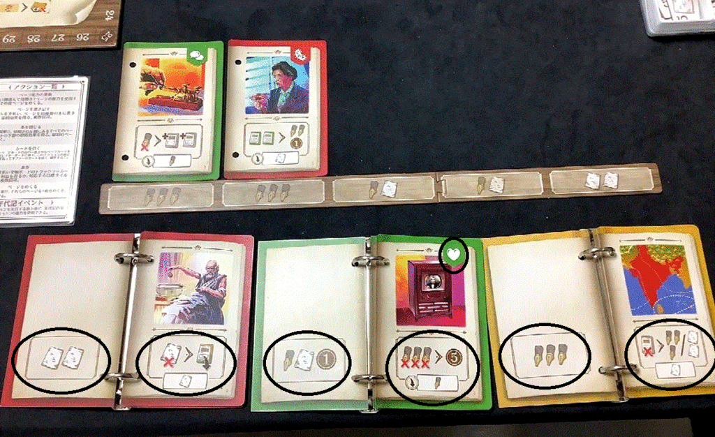 1冊の本を閉じて最初ページを開けます。その途中までめくっていたすべてのカードの即時アクションが発動します。カードのデッキで言う所のリシャッフルみたいなものでしょうか。