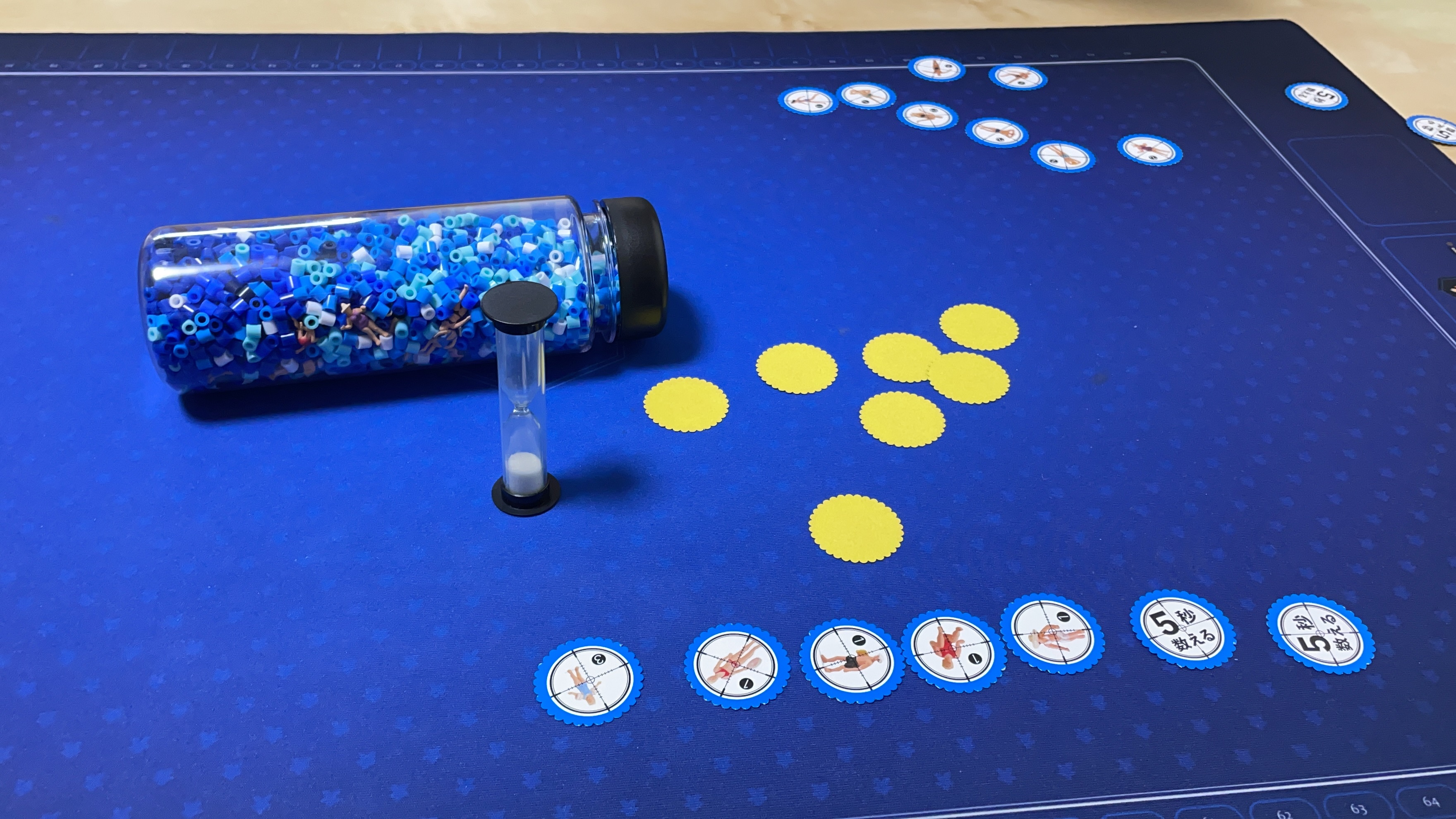 ボトルの中におぼれた人たちがいるので、砂時計が落ちきるまで探す、アクションゲームです。ソロプレイなので誰にも邪魔されませんが、周りに焦らされます。