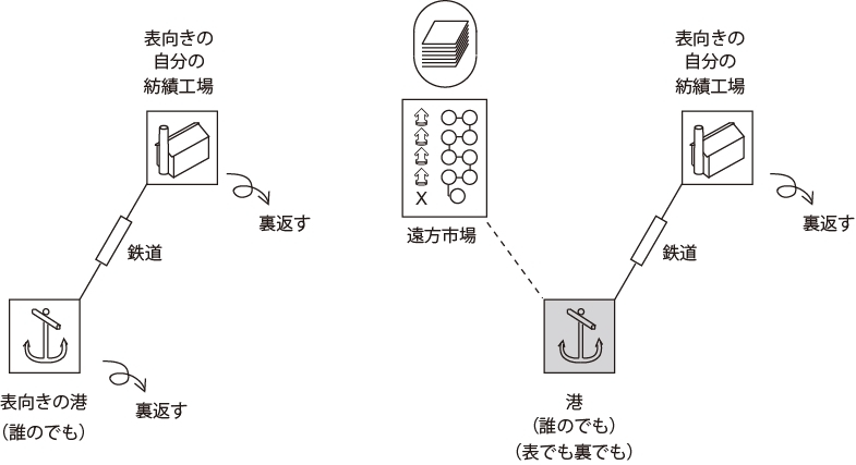 紡績工場から港へあるいは港を通じて遠方綿市場に売ります。
