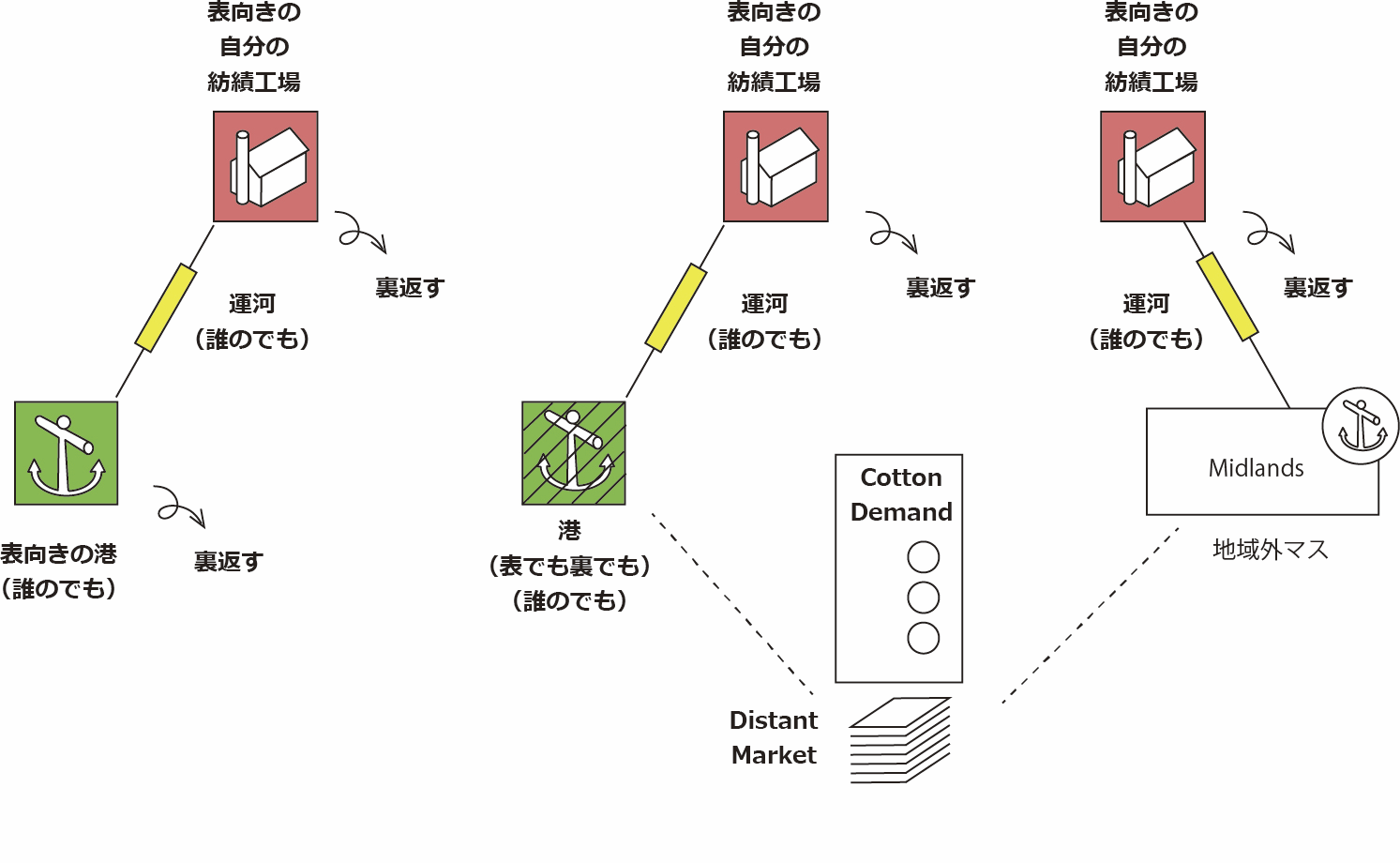 ボード右下の遠方市場(Distant Market)は綿を売る相手先のひとつです。