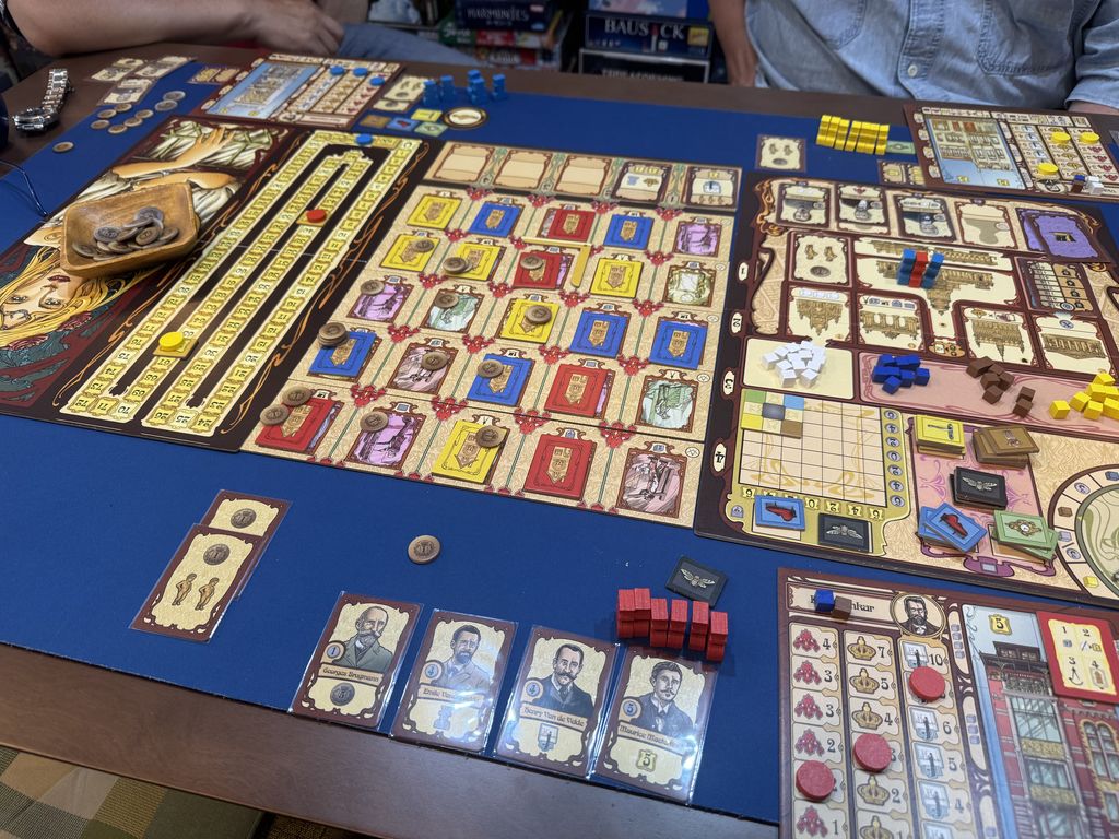 元版の「Bruxelles 1893」は2013年の作品だが、ワーカープレイスメントのワーカー配置に競りやマジョリティ争いという要素を違和感なく融合させていて、今遊んでも全く古さを感じない。当時遊んでいたらどういう感想を抱いただろうか。5人まで遊べるがどうやら4人ベストらしい。まだ5人で遊んでいないので一度試してみたい。