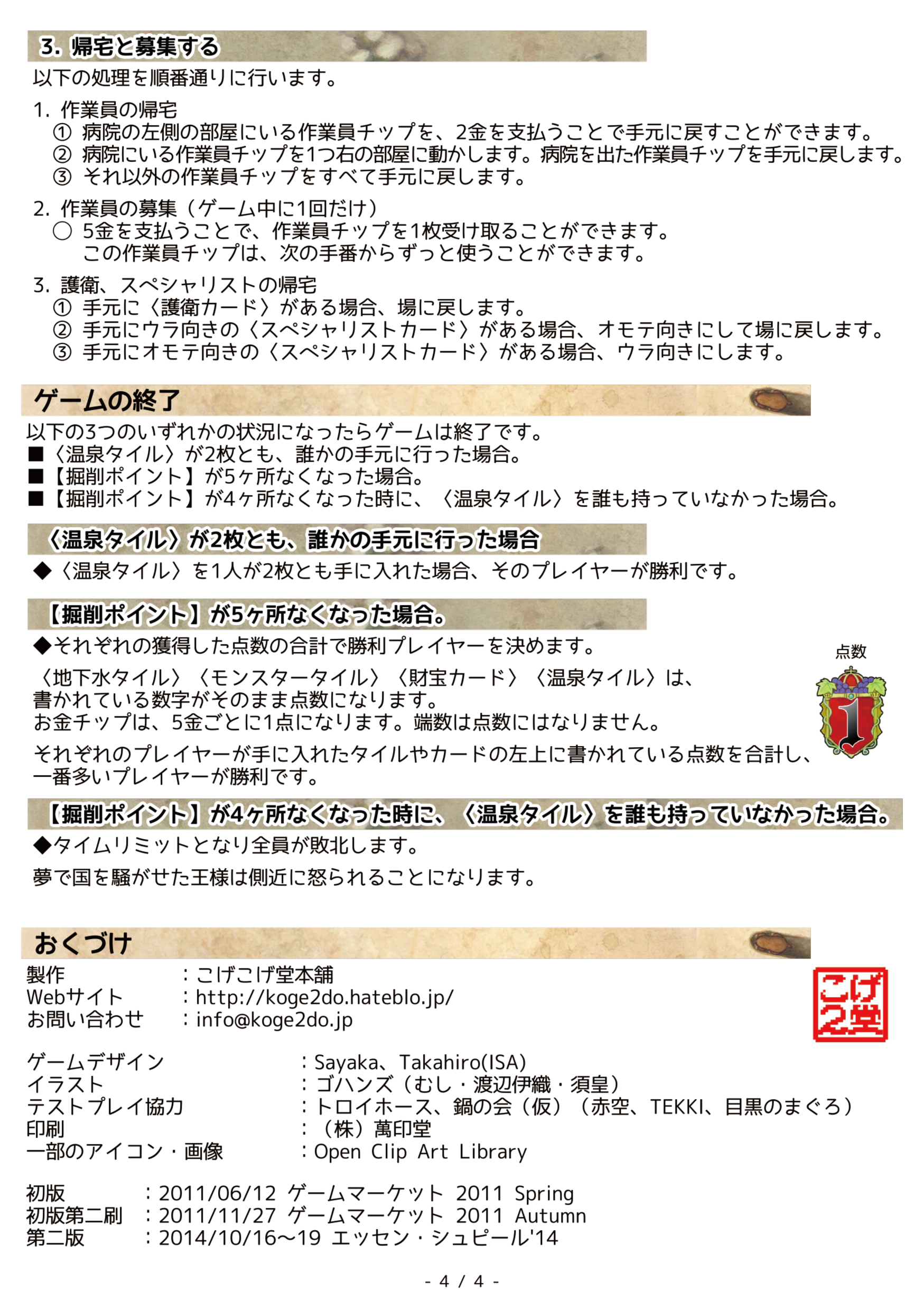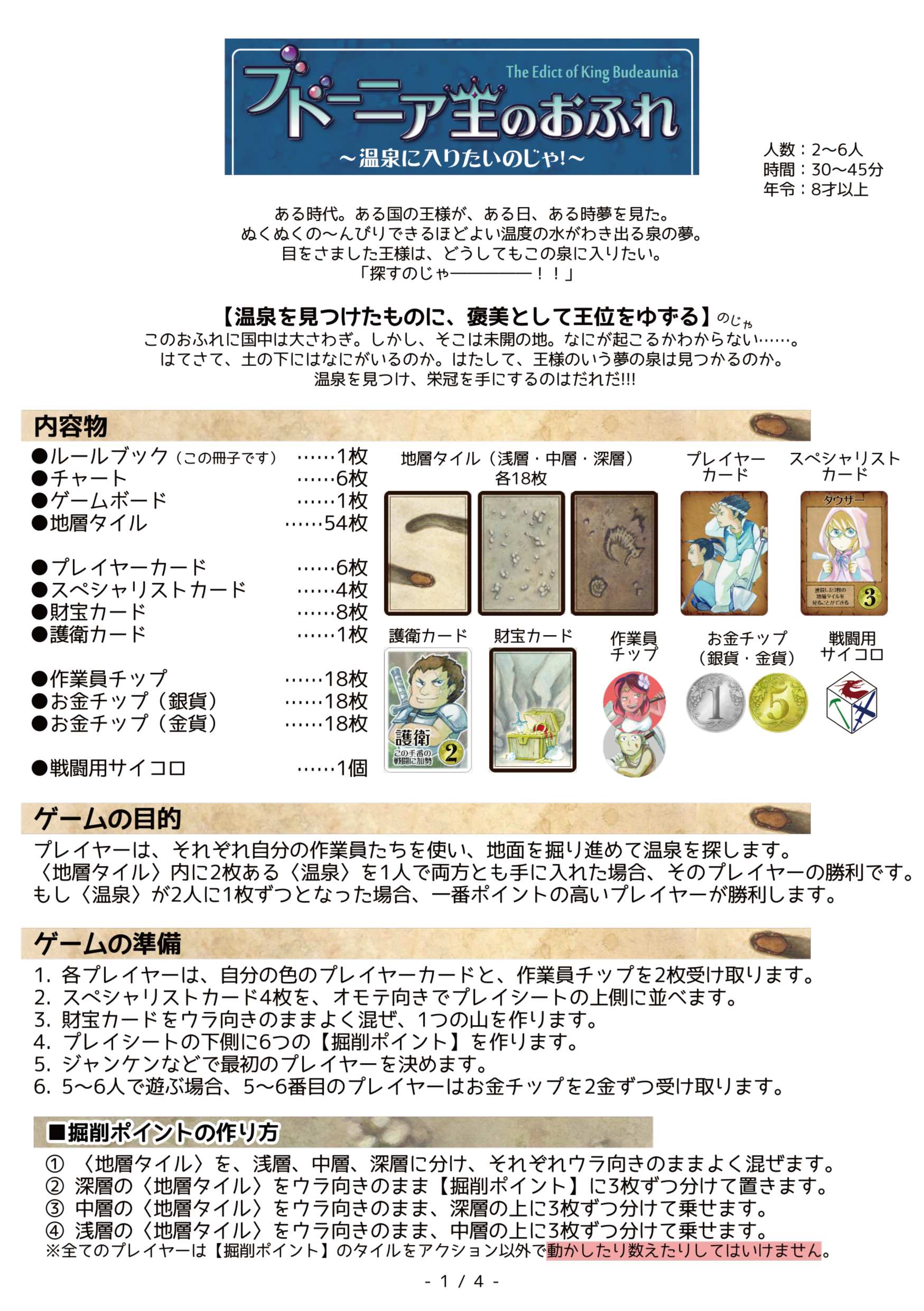 ブドーニア王のおふれ・~温泉に入りたいのじゃ!~こげこげ堂本舗さんのルール/インスト