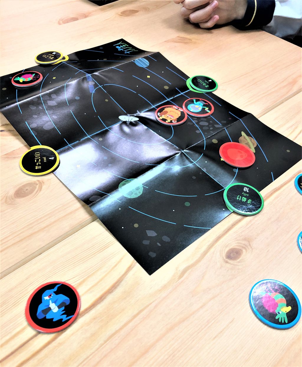子は、表向きになっている親の考え方を参考にしつつ、裏向きのタイルがどのモンスターか、候補の中から選んであてます!あたったら、親と子に得点が入ります。